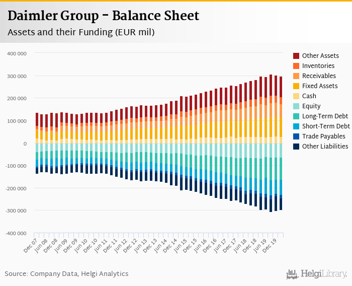 Daimler Group's total assets reached EUR 297,663 mil at the end of 1Q2020, up 0.056% compared to the previous year.