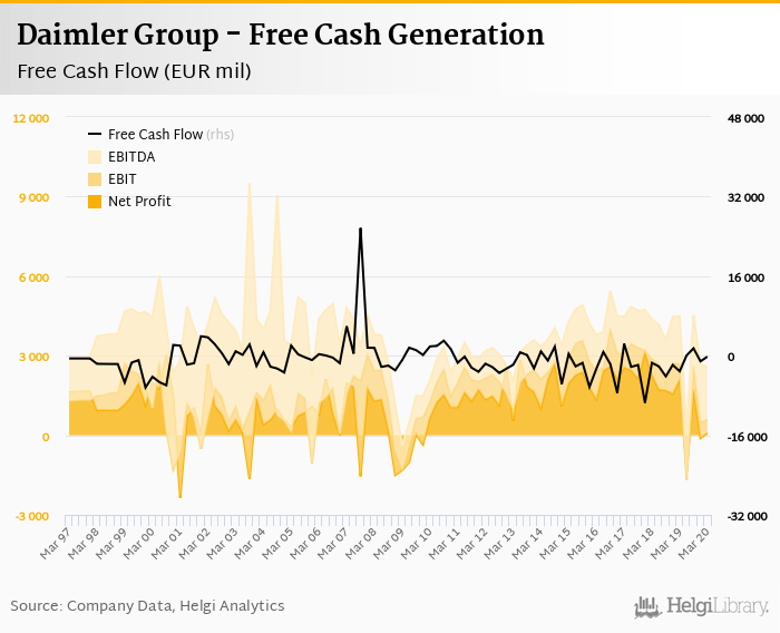 Daimler Group made a net profit of EUR 94.0 mil with revenues of EUR 37,223 mil in 1Q2020, down by 95.5% and down by 6.23%, respectively, compared to the previous year. This translates into a net margin of 0.253%.