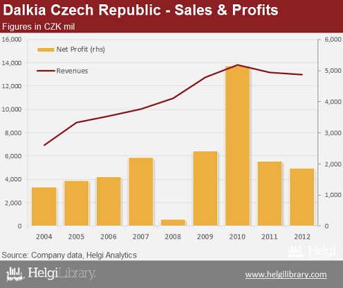 Stable, nicely profitable and little indebted could be a short description of Dalkia's business in the Czech Republic. Sales amounted to around CZK 13 bil while underlying net profit oscillates at around CZK 2 bil in the last four years.
