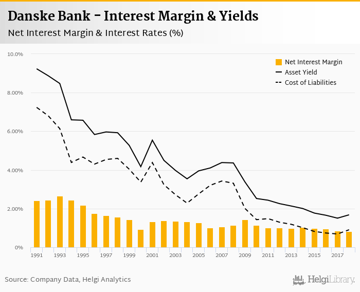 Historically, the bank’s net interest margin reached an all time high of 2.67% in 1993 and an all time low of 0.815% in 2018. The average margin in the last five years amounted to 0.929%.