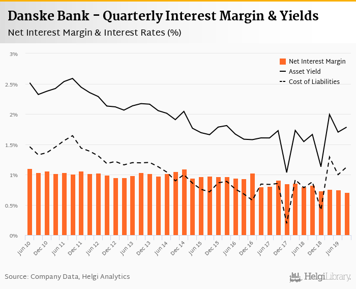 Danske Bank's net interest margin amounted to 0.706% in the third quarter of 2019, down from 0.745% when compared to the previous quarter.