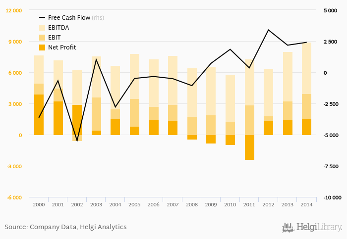 The company generated cash, defined by a sum of net profit and depreciation, of HUF 6,530 mil or 12.5% of sales. When investments are excluded, free cash flow reached HUF 2,399 mil, or 4.58% of sales in 2014.