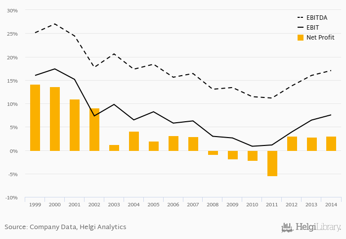 On the operating level, the EBITDA margin reached 17.0% and EBIT amounted to 7.55% of sales in 2014.