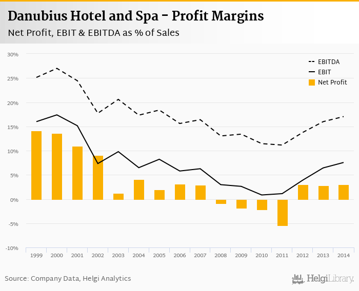 Danubius Hotel and Spa made a net profit of HUF 1,566 mil with revenues of HUF 52,332 mil in 2014, up by 9.51% and up by 4.5%, respectively, compared to the previous year.