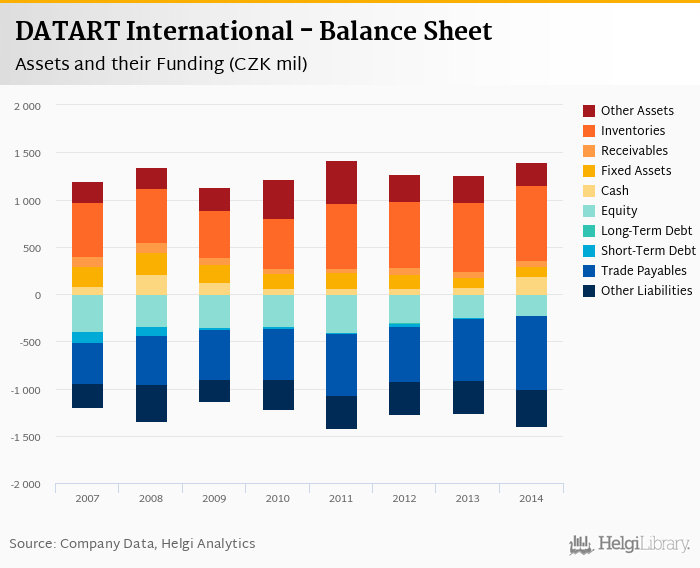 DATART International's total assets reached CZK 1,397 mil at the end of 2014, up 11.2% compared to the previous year.