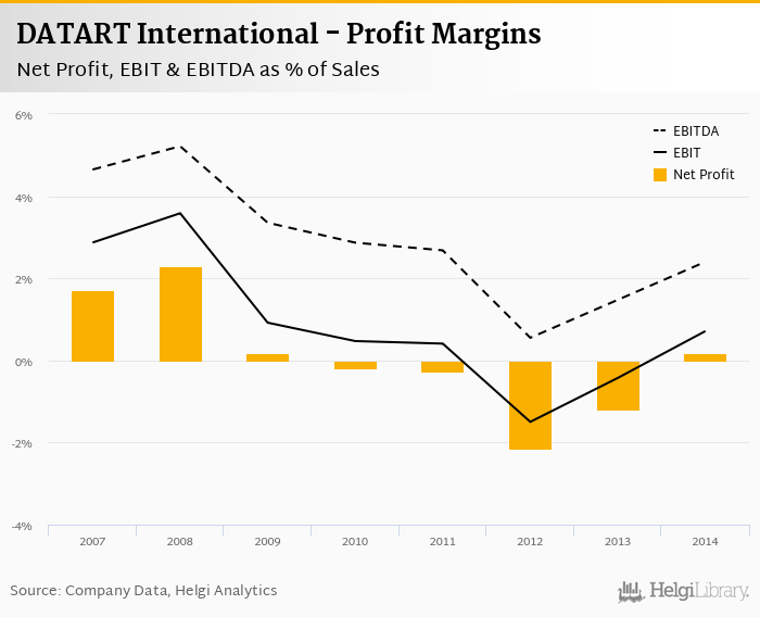 DATART International made a net profit of CZK 8.95 mil with revenues of CZK 4,903 mil in 2014, up by 116% and up by 3.17%, respectively, compared to the previous year.