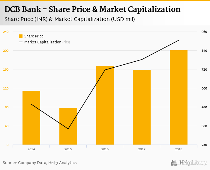 DCB Bank stock traded at INR 201 per share at the end of 2018 implying a market capitalization of USD 904 mil.