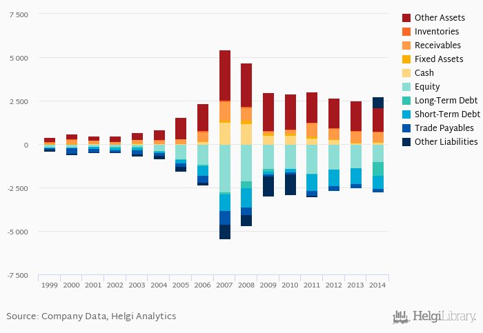 Net debt against equity is up 1.62 pp from five years ago (-0.151). The ratio against EBITDA increased from -2.36x seen in 2009 to 232x.