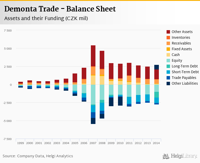 Demonta Trade's total assets reached CZK 2,085 mil at the end of 2014, down 16.6% compared to the previous year.