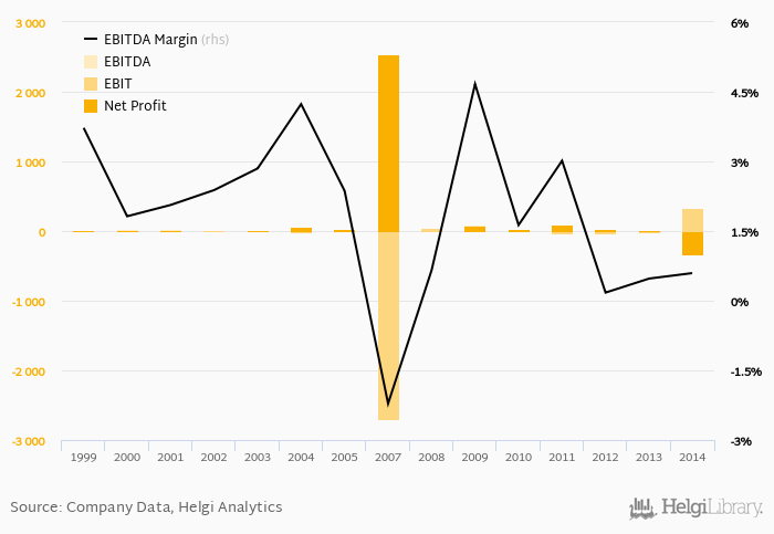 Historically, between 1999 - 2014, the firm’s net profit reached a high of CZK 2,533 mil in 2007 and a low of CZK -327 mil in 2014. Since 2009, the firm's net profit has decreased 502% or nan% a year on average.