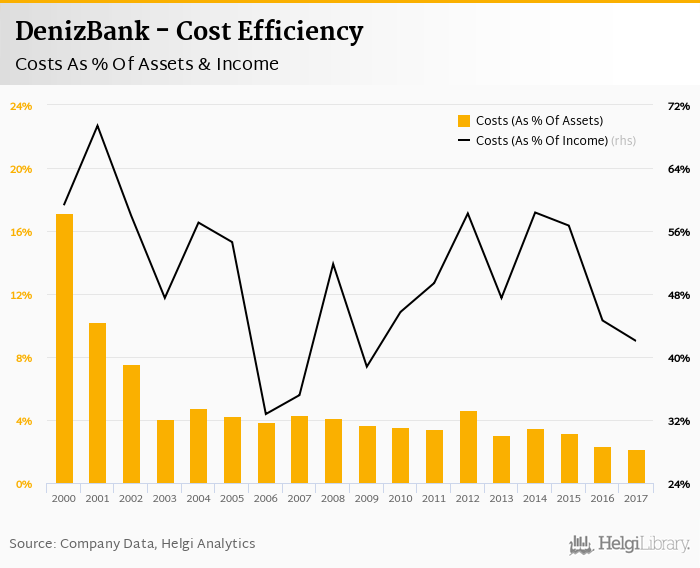 DenizBank's cost to income ratio reached 42.0% in 2017, down from 44.6% compared to the previous year.