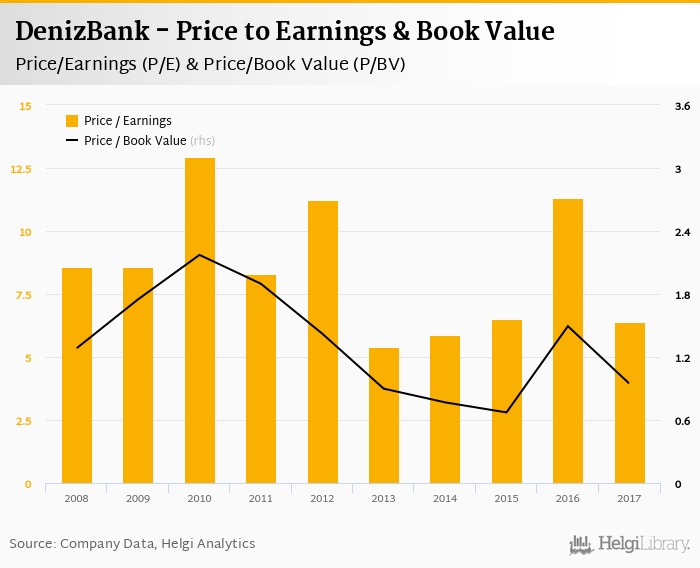 DenizBank stock traded at TRY 3.67 per share at the end 2017 implying a market capitalization of USD 3,217 mil.