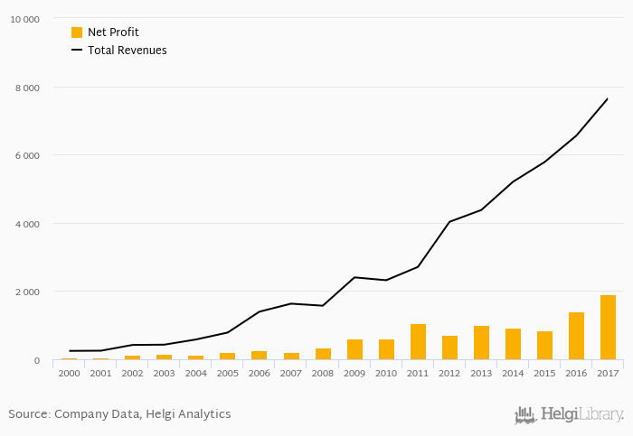 On the other hand, bank’s revenues amounted to an all time high of TRY 7,651 mil in 2017 and an all time low of TRY 246 mil in 2000. The average revenues in the last five years reached TRY 5,913 mil.