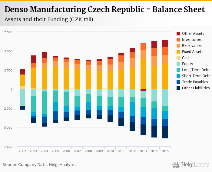 Denso Manufacturing Czech Republic's total assets reached CZK 6,424 mil at the end of 2015, up 1.88% compared to the previous year.