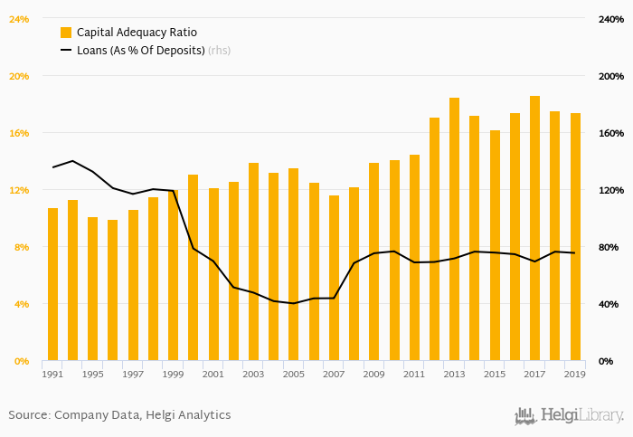 Bank's loan to deposit ratio reached 75.2% at the end of 2019, down from 76.1% when compared to the previous year. Some 10 years ago, loan to deposit ratio of the bank amounted to 75.0%.