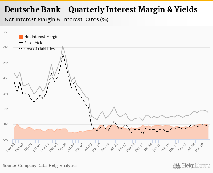 Deutsche Bank's net interest margin amounted to 0.935% in the third quarter of 2019, down from 1.01% when compared to the previous quarter.