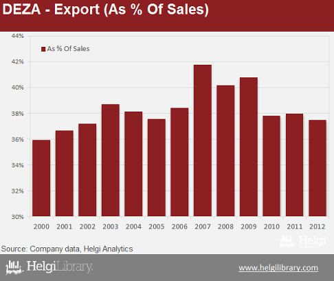 In 2012, the Company exported 57.5% of its production
