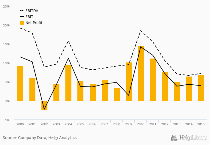 On the operating level, the EBITDA margin reached 7.19% and EBIT amounted to 3.94% of sales in 2015.