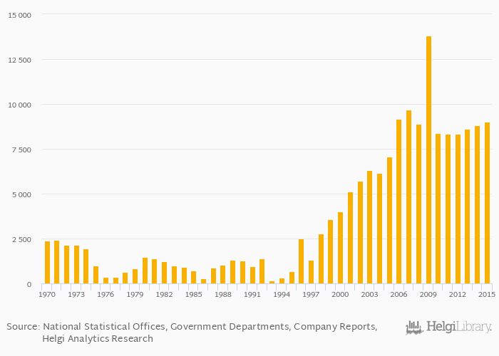 Historically, diamond production in Angola reached an all time high of 13,828 '000 ct in 2009 and an all time low of 147 '000 ct in 1993.