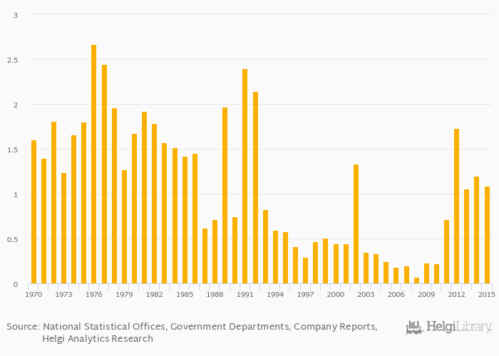 Historically, diatomite production in Kenya reached an all time high of 2.67 kt in 1976 and an all time low of 0.072 kt in 2008.