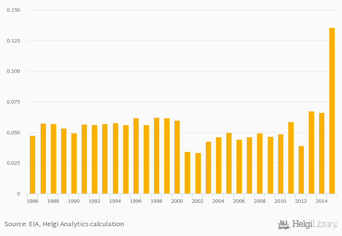 Distillate fuel oil consumption as a share of worldwide consumption rose 104% to 0.136% in Ivory Coast in 2015, according to EIA.
