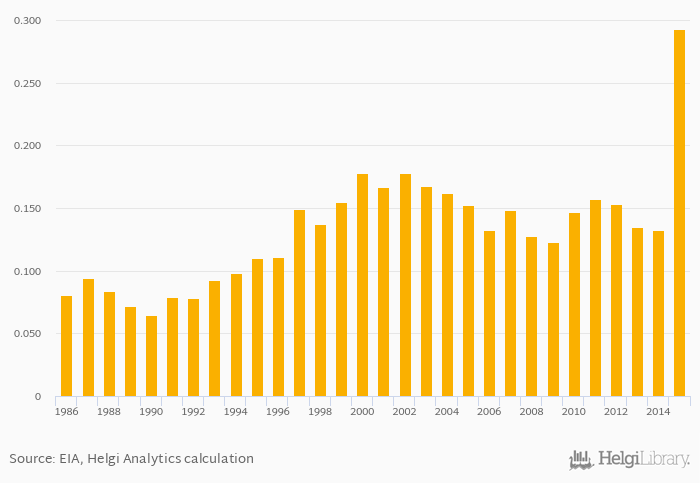 Distillate fuel oil consumption as a share of worldwide consumption rose 121% to 0.293% in Sri Lanka in 2015, according to EIA.