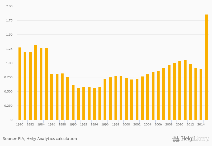 Distillate fuel oil consumption as a share of worldwide consumption rose 107% to 1.85% in Poland in 2015, according to EIA.