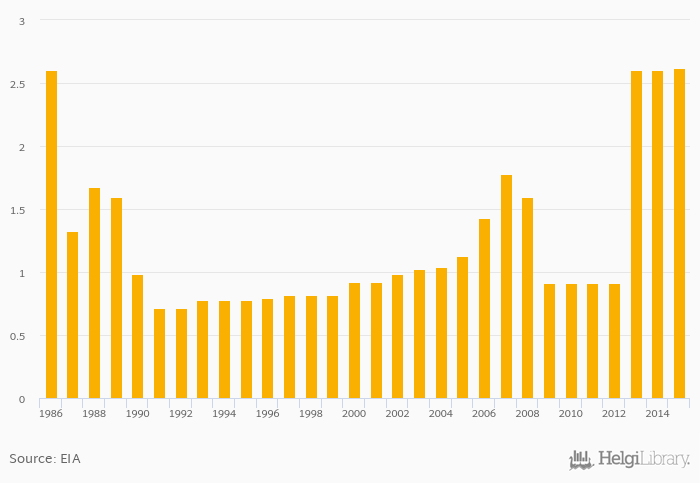 Distillate fuel oil consumption rose 0.620% to 2.62 '000 bpd in Liberia in 2015, according to EIA.