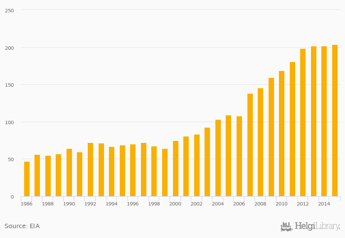 Distillate fuel oil consumption rose 0.708% to 203 '000 bpd in Algeria in 2015, according to EIA.