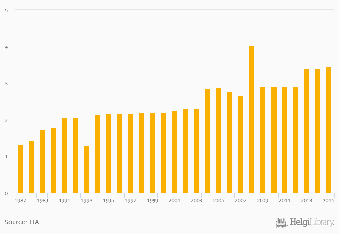 Distillate fuel oil consumption rose 0.990% to 3.43 '000 bpd in Malawi in 2015, according to EIA.