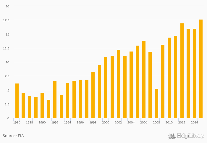 Distillate fuel oil consumption rose 10.3% to 17.6 '000 bpd in Senegal in 2015, according to EIA.