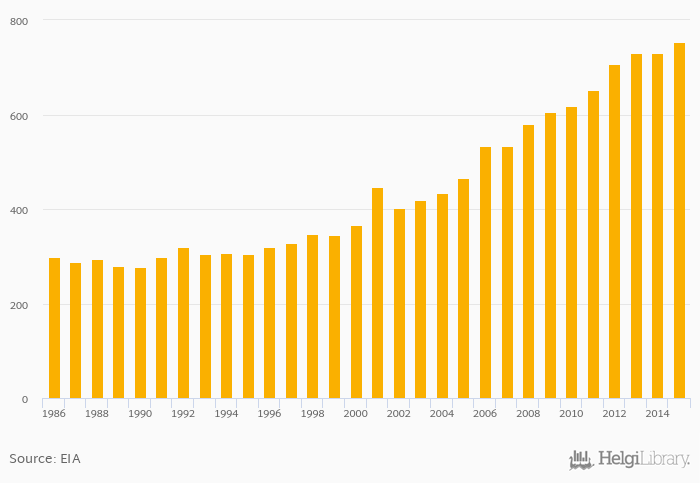 Distillate fuel oil consumption rose 3.24% to 753 '000 bpd in Saudi Arabia in 2015, according to EIA.