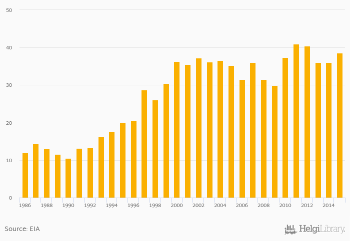 Distillate fuel oil consumption rose 7.15% to 38.6 '000 bpd in Sri Lanka in 2015, according to EIA.