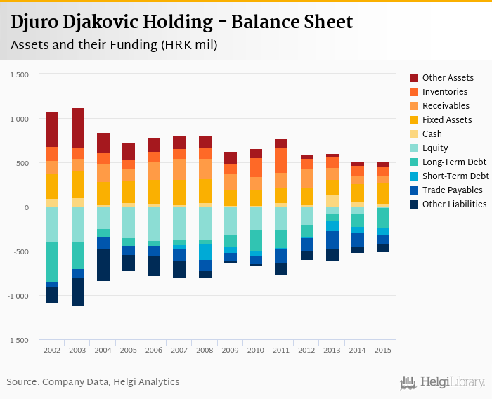 Djuro Djakovic Holding's total assets reached HRK 508 mil at the end of 2015, down 1.56% compared to the previous year.