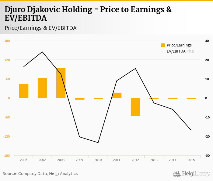 Djuro Djakovic Holding stock traded at HRK 26.5 per share at the end 2015 translating into a market capitalization of USD 31.8 mil.