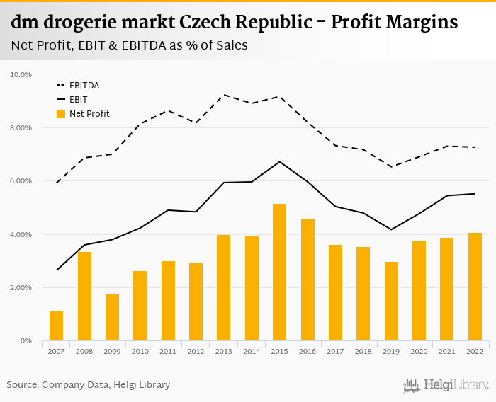 dm drogerie markt Czech Republic made a net profit of CZK 475 mil with revenues of CZK 11,667 mil in 2022, up by 17.1% and up by 11.7%, respectively, compared to the previous year.