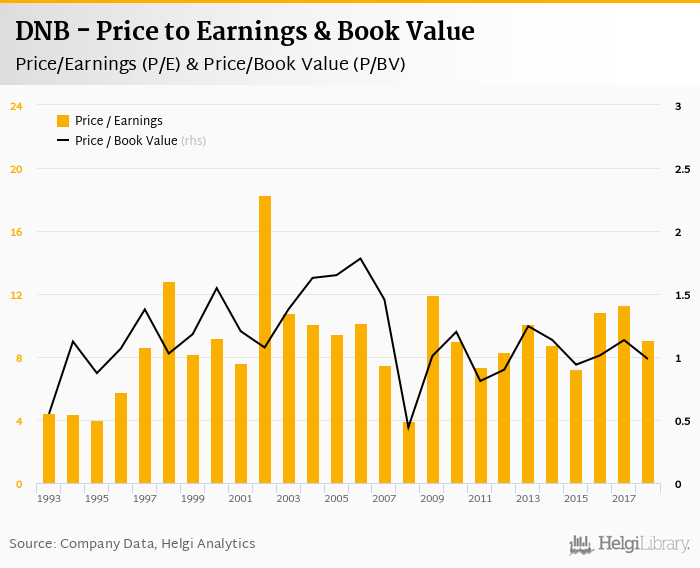 DNB stock traded at 138 per share at the end 2018 implying a market capitalization of USD 25,346 mil.