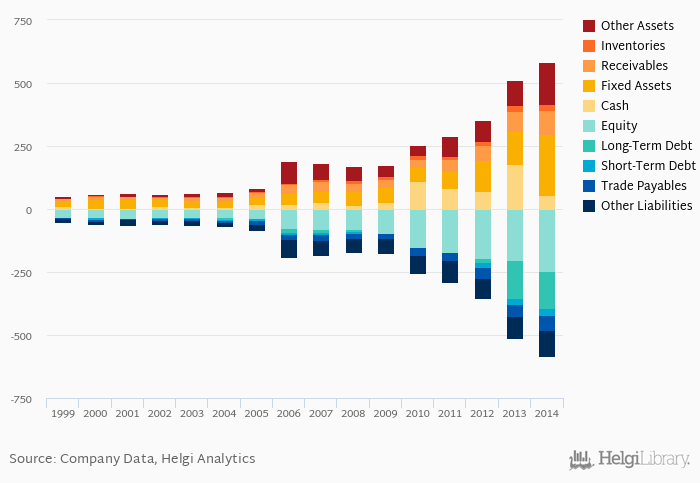 Net debt against equity is up 0.799 pp from five years ago (-0.313). The ratio against EBITDA increased from -0.807x seen in 2009 to 1.47x.