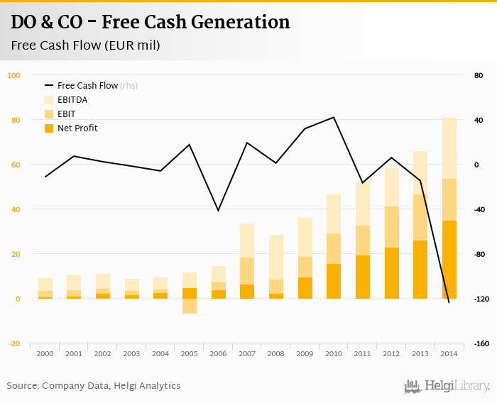 DO & CO made a net profit of EUR 34.9 mil with revenues of EUR 796 mil in 2014, up by 33.7% and up by 25.1%, respectively, compared to the previous year. This translates into a net margin of 4.38%.