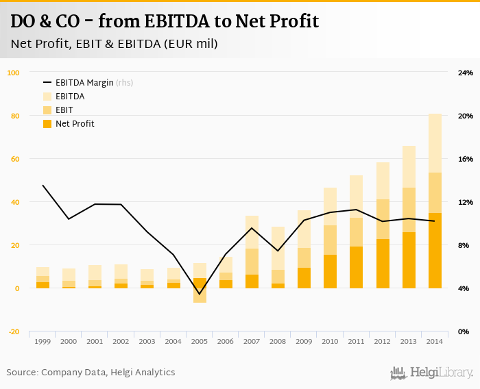 DO & CO made a net profit of EUR 34.9 mil with revenues of EUR 796 mil in 2014, up by 33.7% and up by 25.1%, respectively, compared to the previous year. This translates into a net margin of 4.38%.