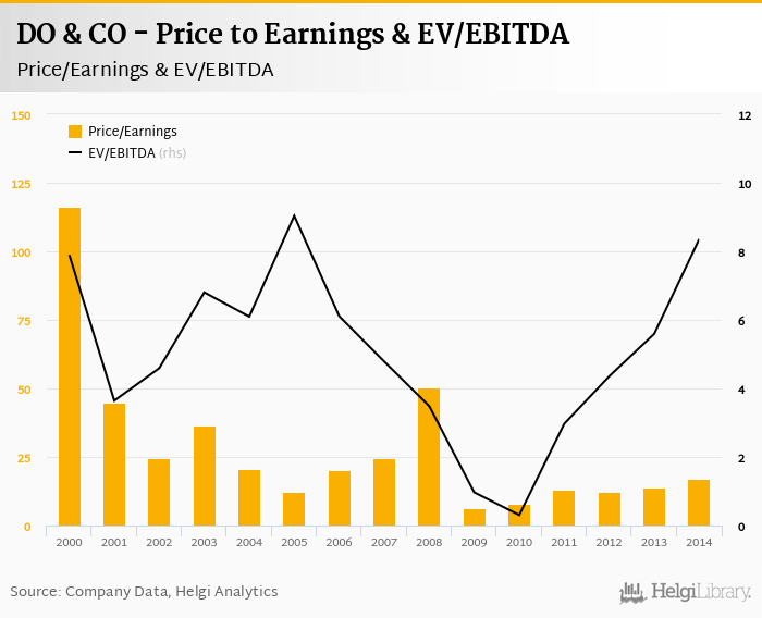 DO & CO stock traded at EUR 62.4 per share at the end 2014 translating into a market capitalization of USD 727 mil.