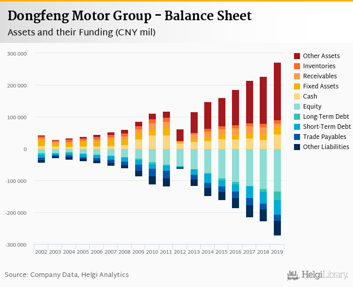 Dongfeng Motor Group's total assets reached CNY 272,000 mil at the end of 2019, up 20.1% compared to the previous year.