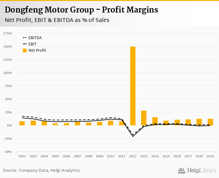 Dongfeng Motor Group made a net profit of CNY 12,858 mil with revenues of CNY 101,087 mil in 2019, down by 0.932% and down by 3.31%, respectively, compared to the previous year.