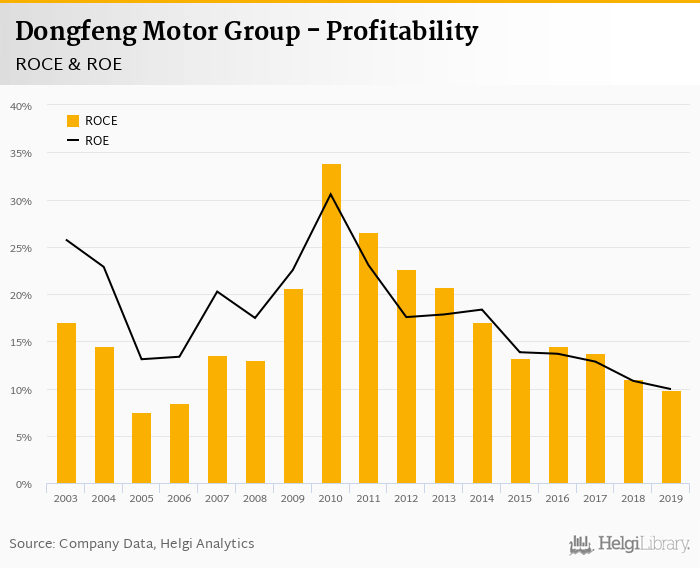 As far as Dongfeng Motor Group's peers are concerned, Chongqing Changan Automobile generated ROE of -5.88% and ROCE of -4.29% in 2019. SAIC Motor Corporation's profitability reached 8.74% and 8.02%, respectively. Volkswagen Group operated with 11.1% and 3.61% returns in 2019.