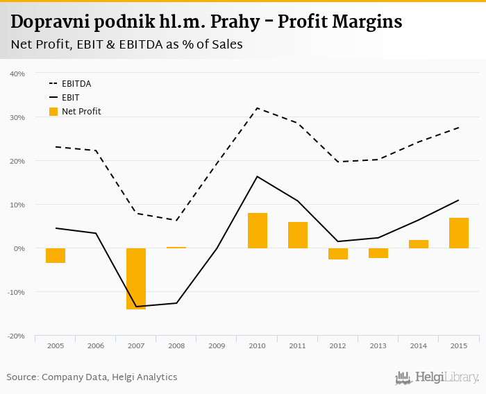 Dopravni podnik hl.m. Prahy made a net profit of CZK 1,255 mil with revenues of CZK 18,094 mil in 2015, up by 297% and up by 6.77%, respectively, compared to the previous year.