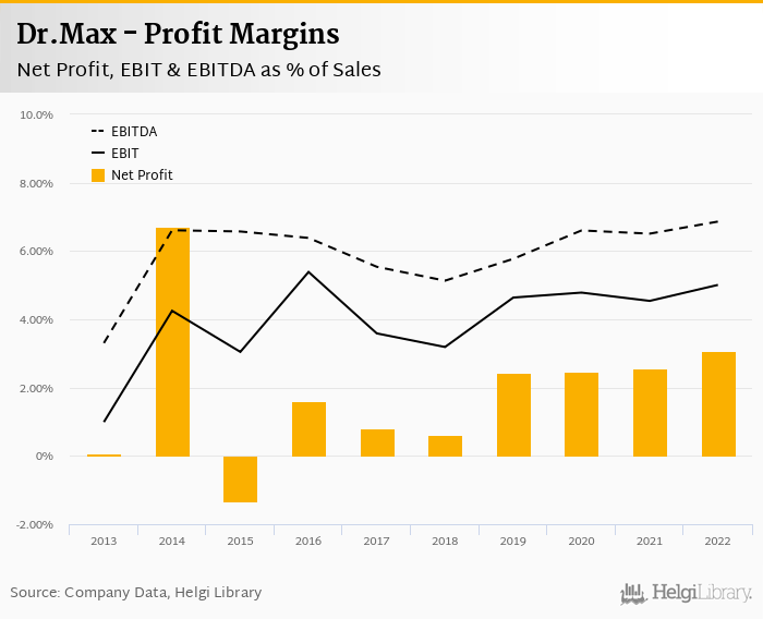 Dr.Max made a net profit of CZK 762 mil with revenues of CZK 24,796 mil in 2022, up by 31.7% and up by 9.88%, respectively, compared to the previous year.