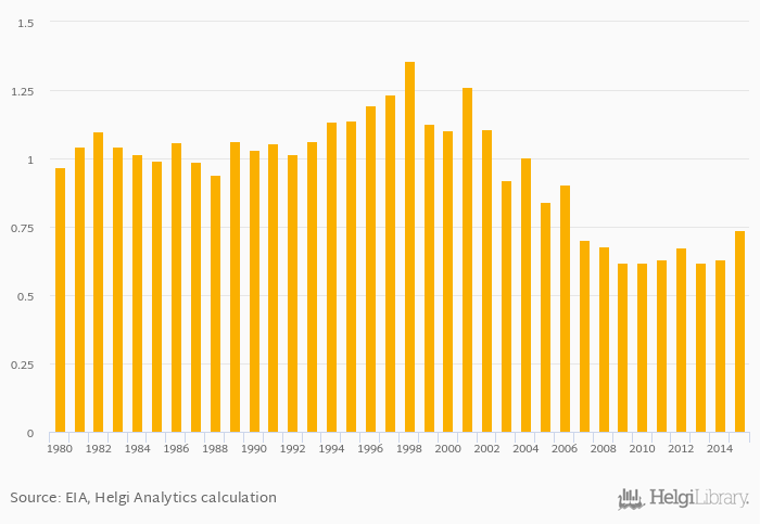Dry natural gas production as a share of worldwide production rose 17.1% to 0.740% in Venezuela in 2015, according to EIA.
