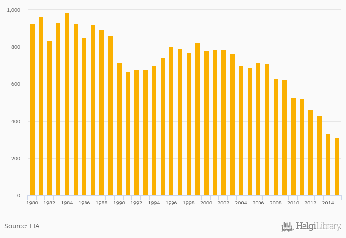 Historically, dry natural gas production in Germany reached an all time high of 988 bil cb ft in 1984 and an all time low of 308 bil cb ft in 2015.
