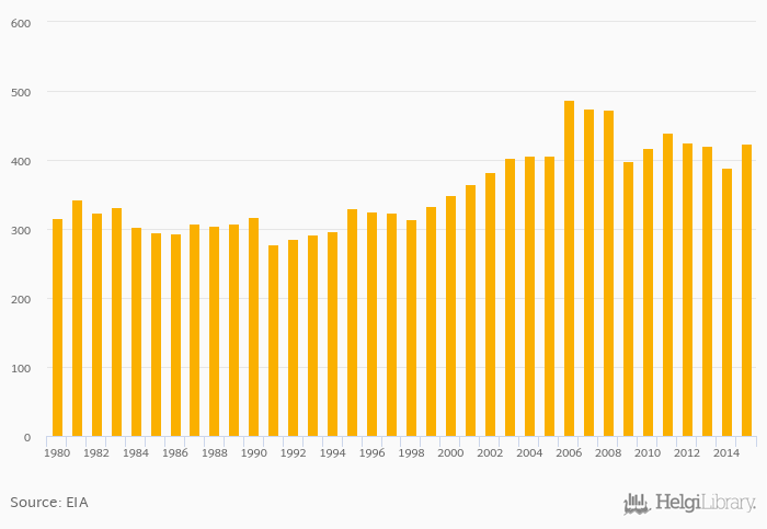 Dry natural gas production rose 8.99% to 424 bil cb ft in Brunei in 2015, according to EIA.