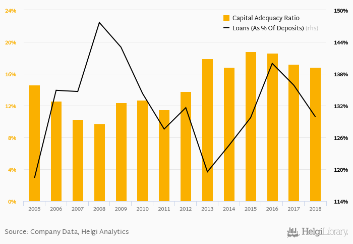 Bank's loan to deposit ratio reached 130% at the end of 2018, down from 136% when compared to the previous year. Some 10 years ago, loan to deposit ratio of the bank amounted to 148%.